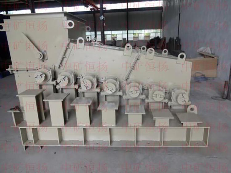 4. 独特的变倾角结构:筛轴是变倾角结构,倾角以5°~10°~15°进行布置,优点是使入料口的煤层迅速分层,且在入料挡板上焊有导流板,使原煤能迅速布满整个筛面,更利于煤流在筛面等厚均匀流动,且避免入料口处的筛轴载荷过大造成的停机;筛面角度逐渐减小,则提高物料的筛分效果,整个筛面物料层分布均匀,有利于物料充分筛分,提高物料筛分效率,故称“等厚滚动筛”。