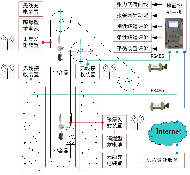 1、监测装置安装后不影响容器现有运行条件,不会影响换绳、调绳以及检修查验工作;
