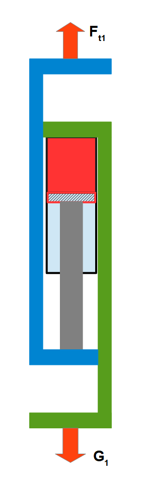 其中:F-提升绳终端力; G-提升绳下总载荷,含容器、载物及尾绳等重量; n-提升绳根数; P-悬挂油缸内油压; S-油缸活塞面积